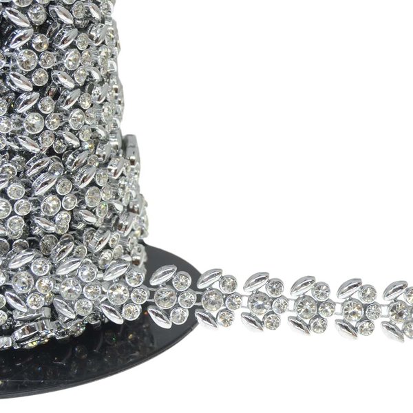 Pérola ABS 14mm Dourado/Cristal em material de alta qualidade. O acabamento metalizado garante um toque moderno e elegante. Vendido em pedaços de 30cm.