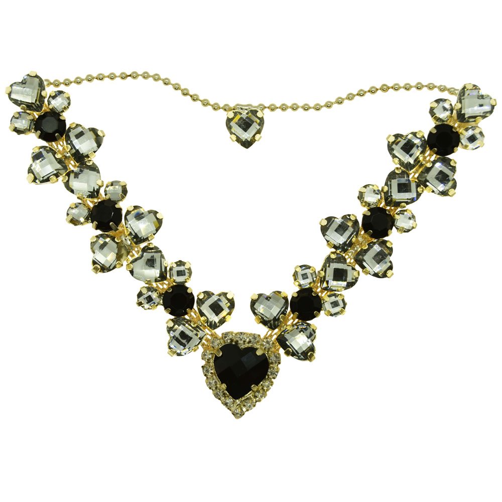 Cabedal Banhado Afrodite V com Pedrarias e Correntinha Preto/Fumê