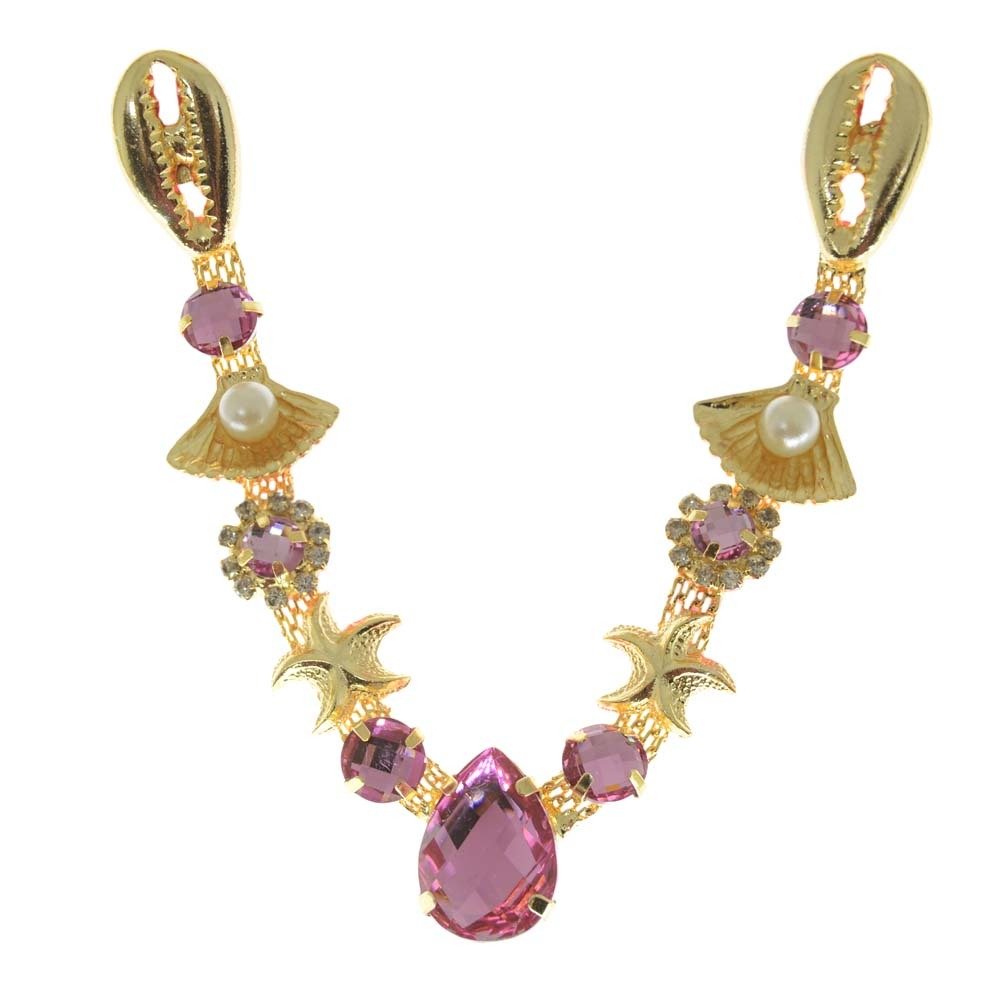 Cabedal Banhado Fundo do Mar Marina V com Pedrarias Rosa Claro