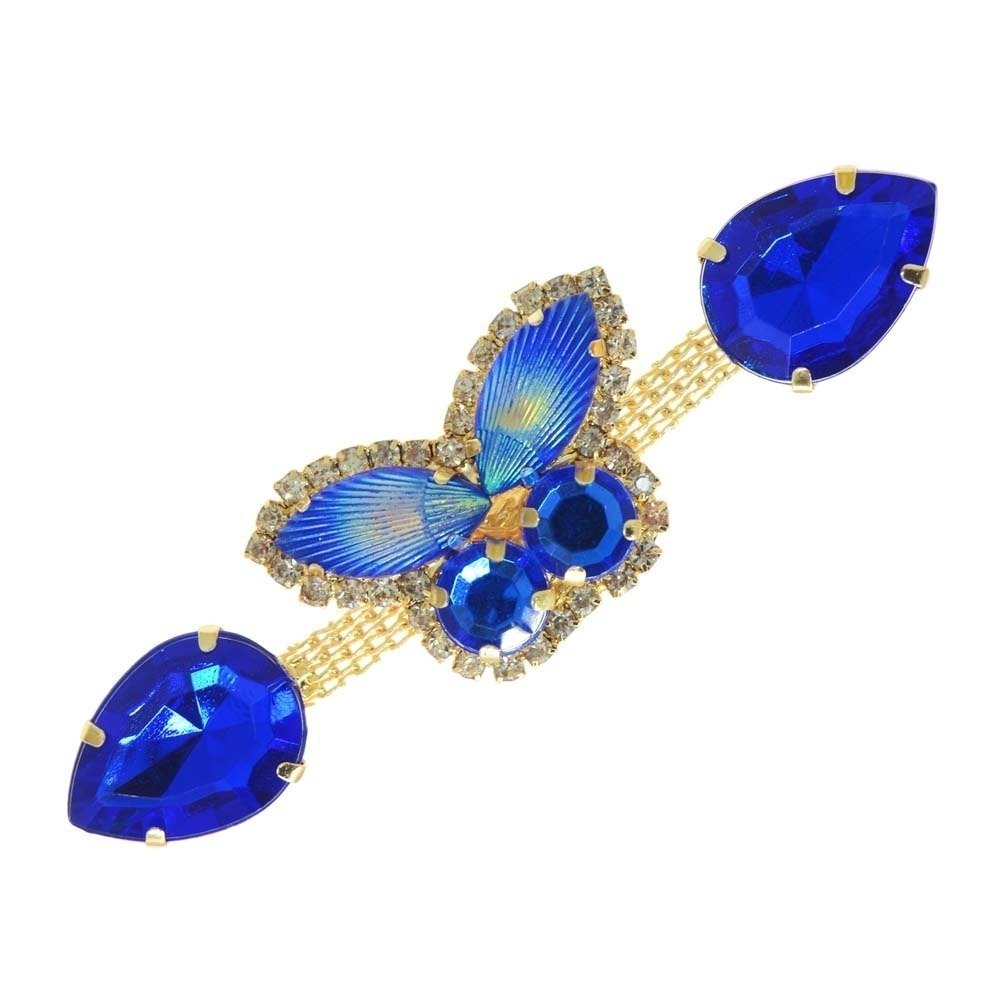 Cabedal Banhado Borboleta Chiara Lateral com Pedrarias Azul Royal