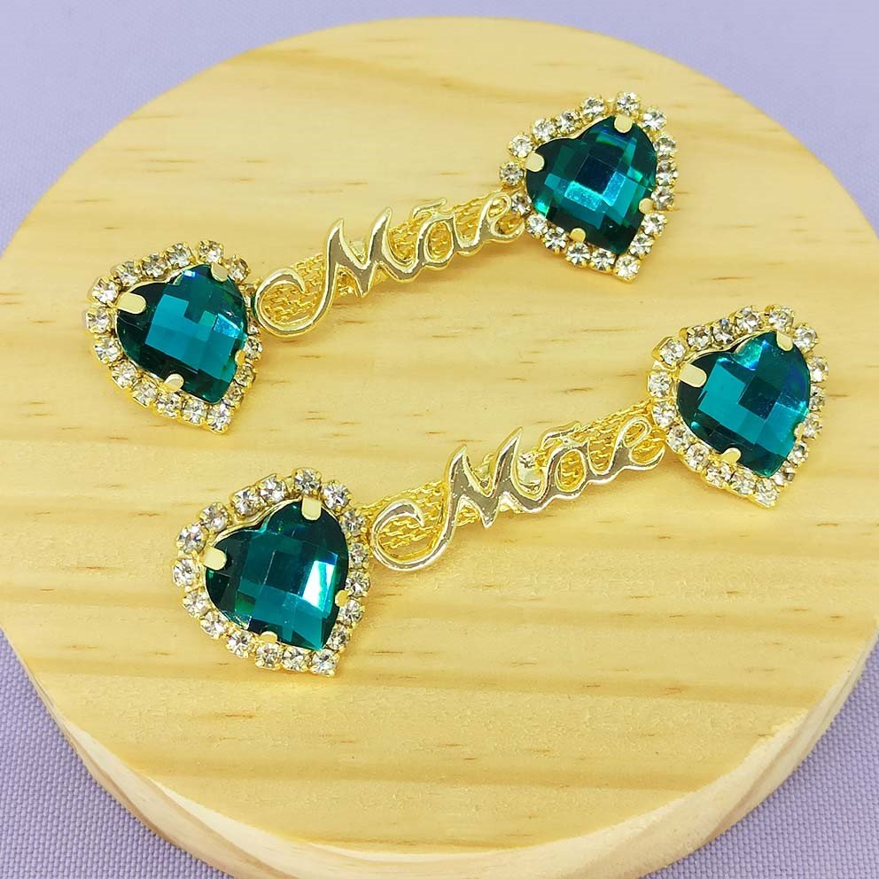 Cabedal Banhado Mãe Coração Lateral com Pedrarias e Strass Verde Turquesa