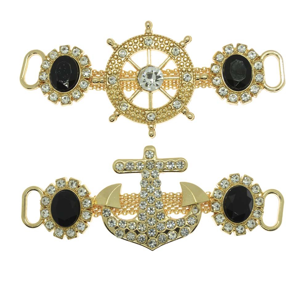 Cabedal Nautical Âncora e Leme Lateral com Pedrarias Preto/Cristal