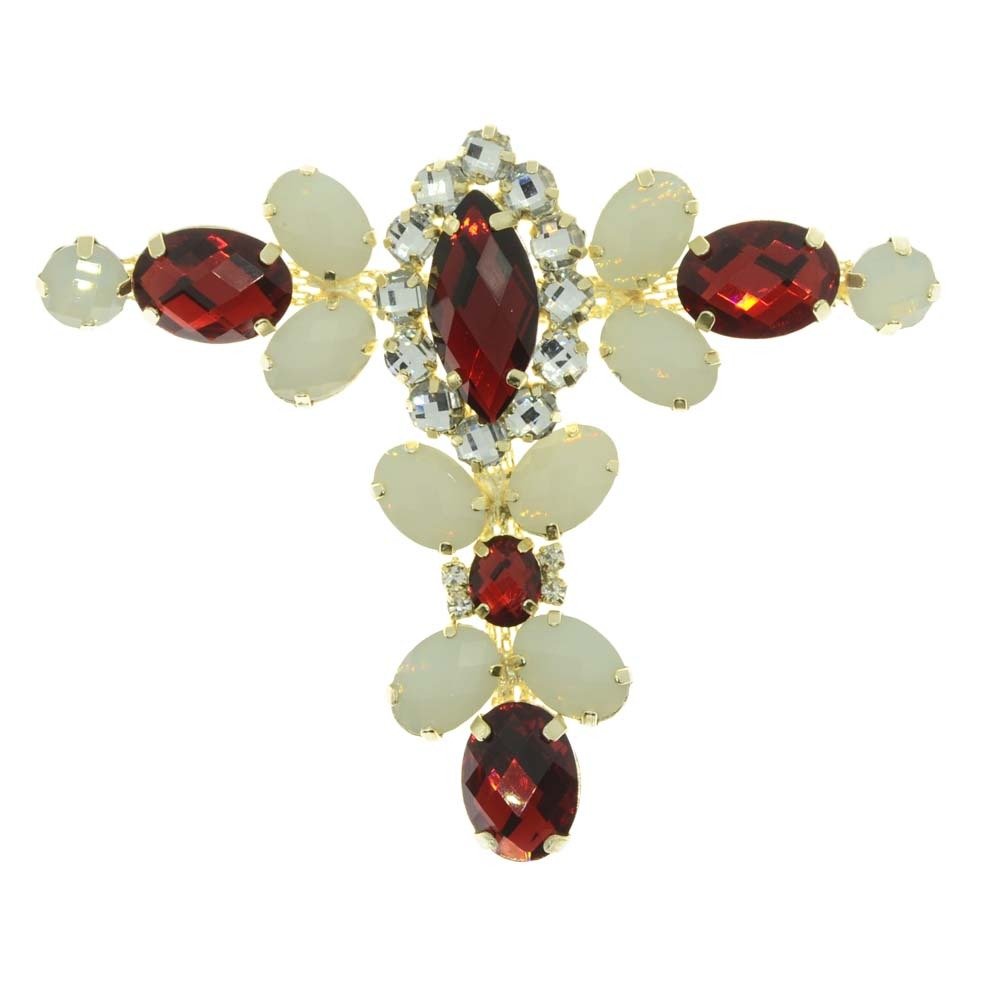Cabedal Banhado Tamara T com Pedrarias Vermelho/Branco Opal