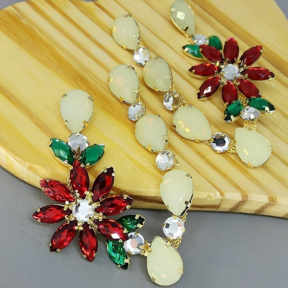 Cabedal Banhado Girassol Daisy V com Pedrarias Branco Opal/Vermelho