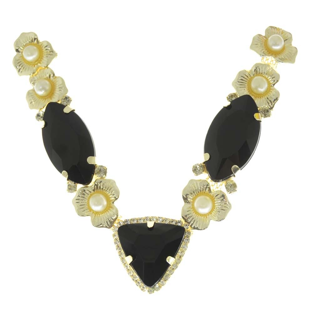 Cabedal Banhado Flor Maura Lateral com Pedrarias e Folhas Cristal Furtacor