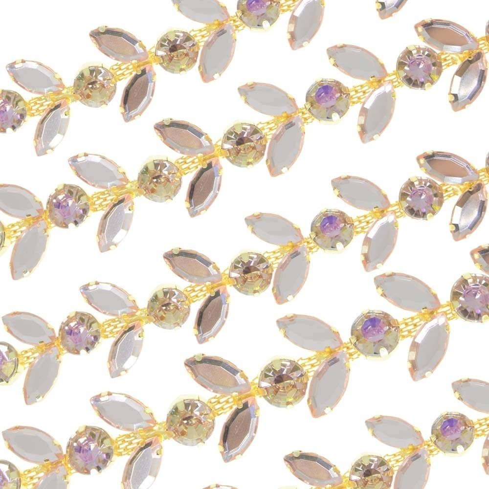 Cabedal Banhado Teresa V com Pedrarias e Folhas Cristal/Opal