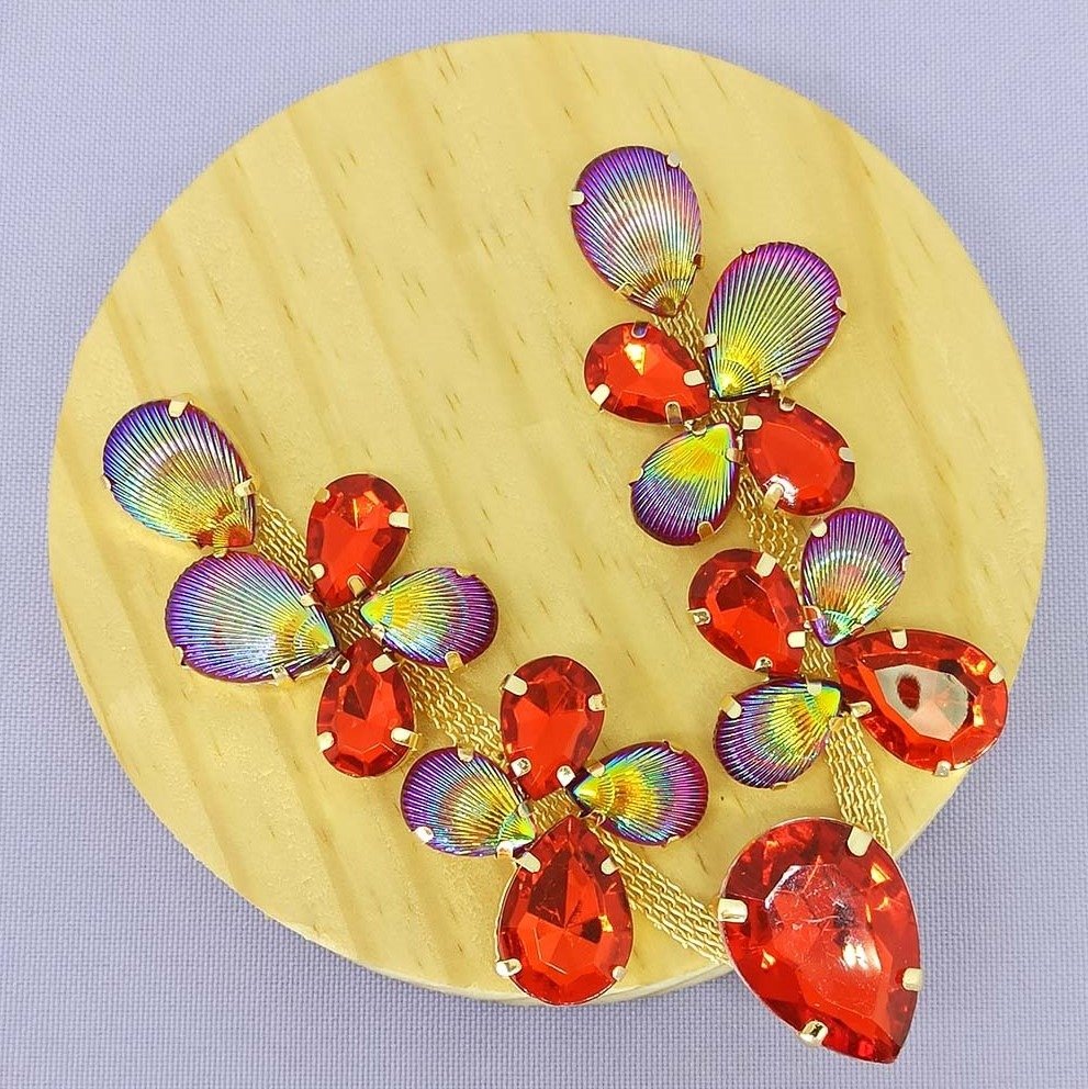 Cabedal Banhado Ariane V com Pedrarias Vermelho/Vermelho Sereia