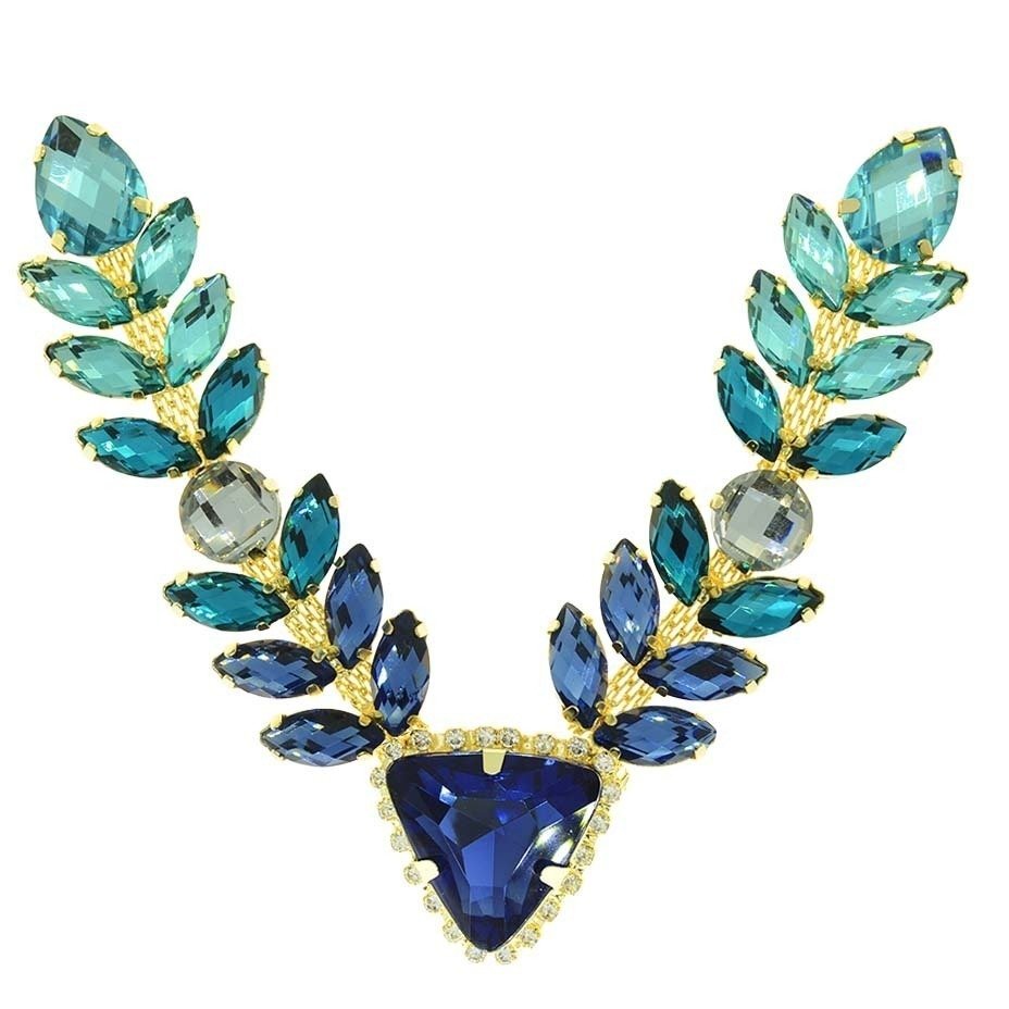 Cabedal Banhado Afrodite V com Pedrarias e Correntinha Turquesa/Azul Tiffany