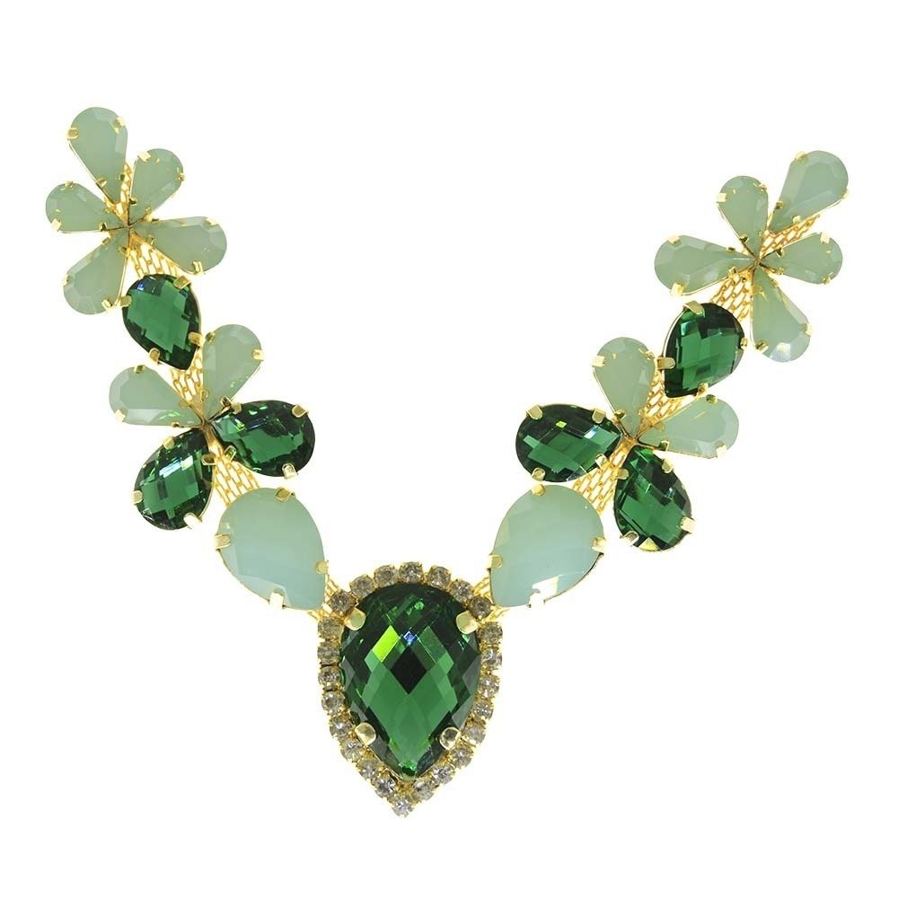 Cabedal Banhado Monique V com Pedrarias Verde/Tiffany