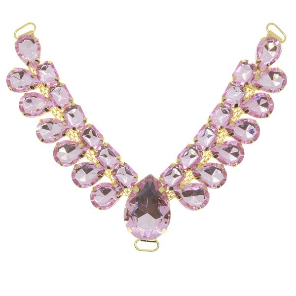 O Cabedal Adele é formado pela combinação de chatons ovais e retangulares, o que torna esse modelo único! O cabedal em formato em V é muito fácil de ser aplicado, basta fazer o acabamento com fio de seda ou courinho, passando pelos passantes para fixar a peça.