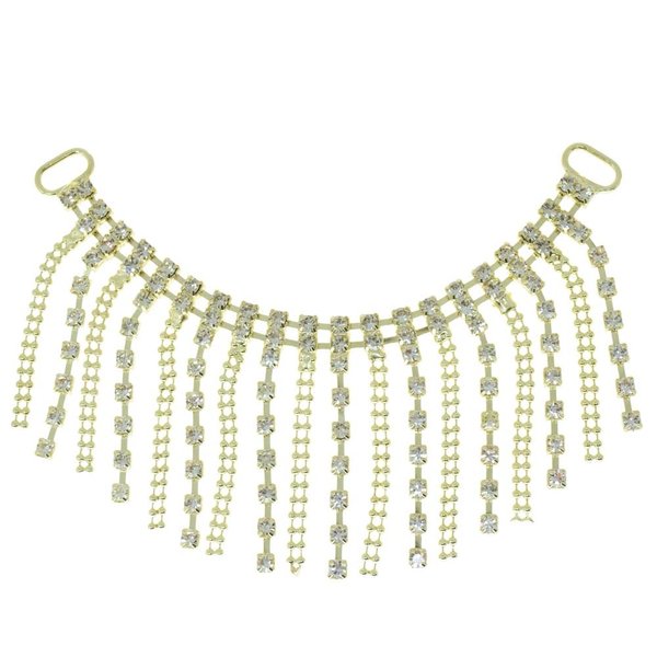 O Cabedal Brenda é um cabedal que pode ser aplicado tanto em chinelos modificados com correia em formato T quanto na lateral como se fosse um cabedal em I. O strass traz brilho e luxo ao modelo e os detalhes em metal dourado claro ajudam a espalhar o brilho. Aplique no chinelo enrolando com Fio de Seda.