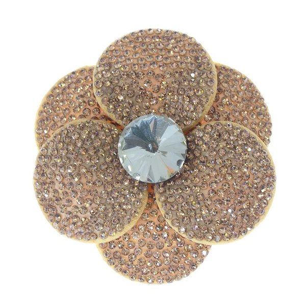 Cabedal de tecido estilo flor com botão de cristal, detalhes furtacor e cristal. Este cabedal além de lindo é muito fácil de aplicar! Basta modificar as correias do chinelo e costurá-lo. Transforme seu chinelo básico em um calçado cheio de glamour e estilo.
