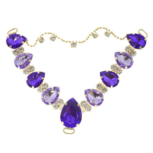 O Cabedal Carol é um modelo clássico e que combina com diversos estilos. É formado pela combinação de chatons em gota e correntinha, o que deixa esse modelo mais delicado e muito luxuoso! O cabedal em formato em V é muito fácil de ser aplicado, basta fazer o acabamento com fio de seda ou courinho, passando pelos passantes para fixar a peça. Finalize o acabamento nas correias com strass e agregue mais valor ao seu trabalho.