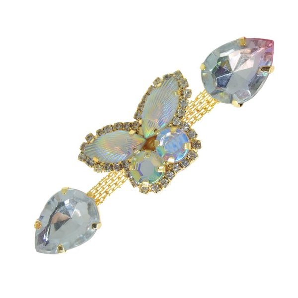 O Cabedal Chiara traz uma Borboleta no centro e dois chatons no estilo escama de sereia nas pontas. Produto de excelente qualidade, produzida artesanalmente, com banho de bijuteria fina e aplicação de verniz protetor. Muito fácil de ser aplicada! É só furar, aplicar e fazer o acabamento com fio de seda e strass.