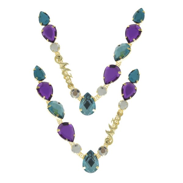 Cabedal banhado em formato V para customizar correias de chinelos, com banho e pedrarias de alta qualidade – Vendido em par