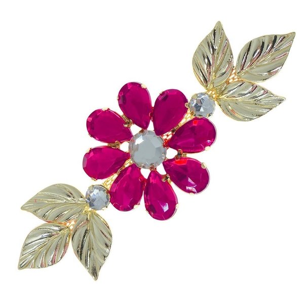 O Cabedal Maura é uma peça lateral de design exclusivo, com destaque para uma grande flor central e elegantes folhas de metal nas extremidades. Com três rebites que garantem um encaixe firme, esse cabedal recebe um banho cataforético, proporcionando brilho duradouro e alta resistência à corrosão. Ideal para personalizar chinelos e sandálias, o Cabedal Maura oferece estilo e qualidade para calçados diferenciados, perfeitos para quem busca um toque de sofisticação.