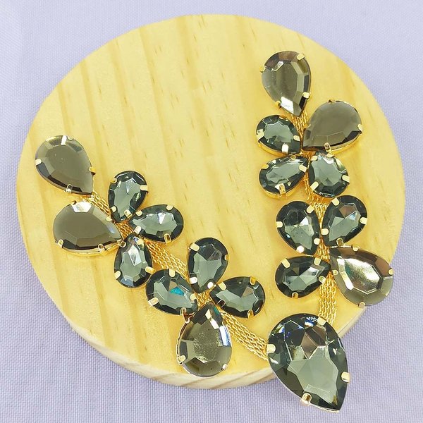 Cabedal banhado em formato V para customizar correias de chinelos, com banho e pedrarias de alta qualidade – Vendido em par