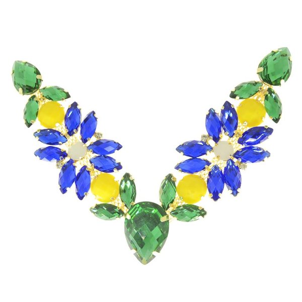 Cabedal banhado em formato V para customizar correias de chinelos, com banho e pedrarias de alta qualidade – Vendido em par