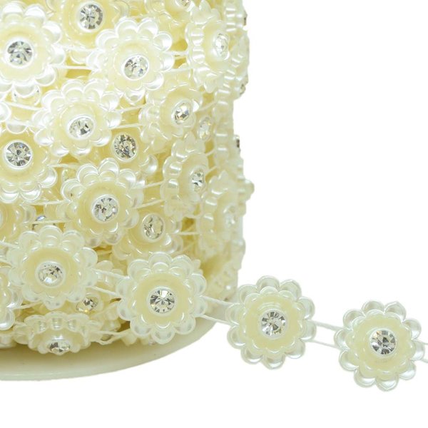 Pérola ABS 15mm Creme em material de alta qualidade - Vendido em pedaços de 30cm.