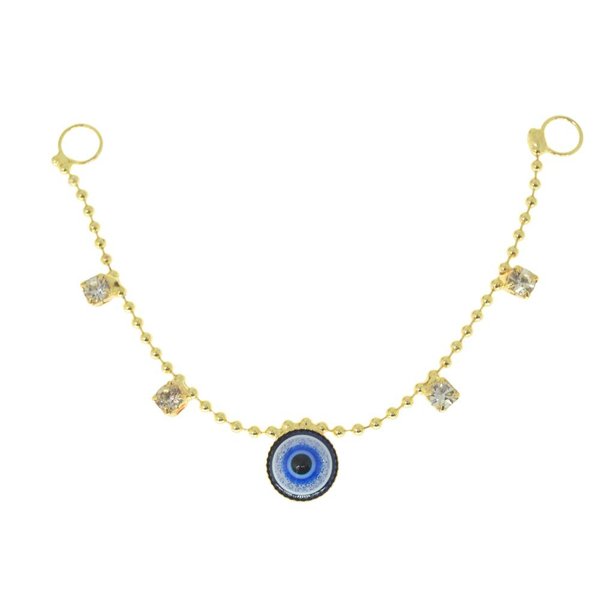 A Correntinha para Cabedal traz um pingente de Olho Grego no centro e duas pedrinhas de strass nas laterais.Basta aplicar a argola da correntinha dentro do rebite ao aplicar o Cabedal e pronto! Seu modelo ficará ainda mais lindo e estiloso! Produto de excelente qualidade, produzida artesanalmente, com banho de bijuteria fina e aplicação de verniz protetor. Muito fácil de ser aplicada!