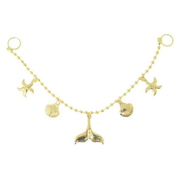 A Correntinha para Cabedal traz um pingente de Rabo de Sereia no centro, uma concha e uma estrela do mar nas laterais. Basta aplicar a argola da correntinha dentro do rebite ao aplicar o Cabedal e pronto! Seu modelo ficará ainda mais lindo e estiloso! Produto de excelente qualidade, que traz um clima praiano ao modelo que você vai aplicar. Produzida artesanalmente, com banho de bijuteria fina e aplicação de verniz protetor. Muito fácil de ser aplicada!