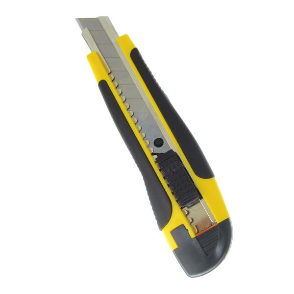 Estilete 18 mm com corpo emborrachado para maior conforto e segurança. Indicado para cortes precisos em artesanato e tarefas do dia a dia.