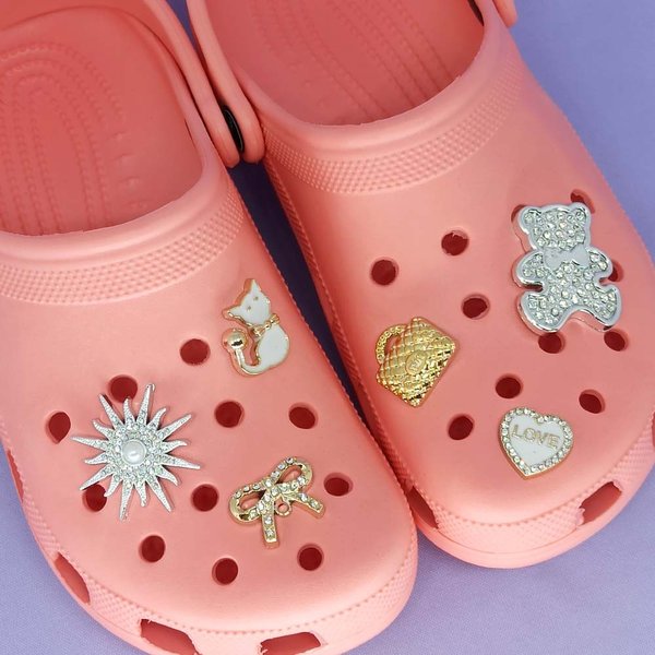 Feitos em plástico ABS de alta qualidade, os apliques possuem encaixe padrão para babuches com furos (como Crocs). Fáceis de aplicar e super resistentes, são perfeitos para customizações criativas.
