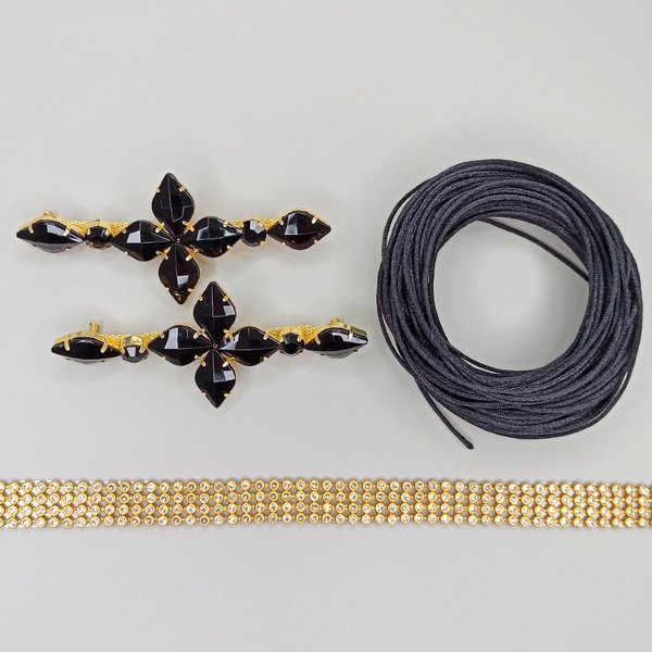 - 1 peça com 4 fileirinhas x 40cm de Manta de Strass, Ouro/Cristal – perfeita para adicionar brilho extra e destacar cada detalhe da sua criação.