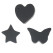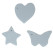 Estrela 47mm x 48mm x 14mm Coração 50mm x 50mm x 14mm Borboleta 58mm x 37mm x 14mm |