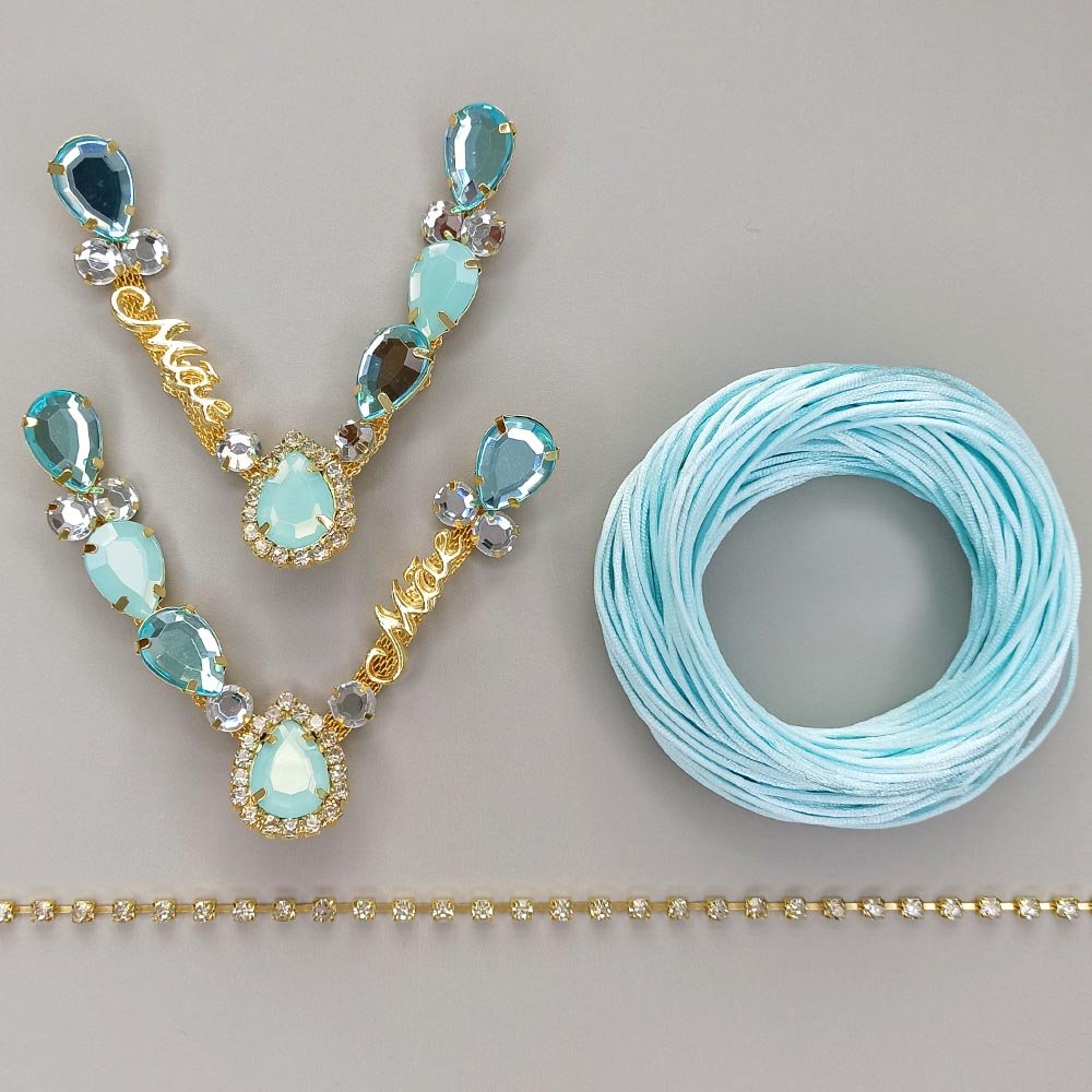 Kit Cabedal Carol – Completo para Customização com Fio de Seda e Strass Azul Tiffany
