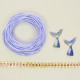 • Aplique, Cauda de Sereia, Resina - 2 unidades • Fio de Seda, 1mm - Peça com 15 metros • Fio de Strass, Ouro, Strass Cristal - 2 metros • Fio de Strass, Ouro, Strass Fúcsia - 1 metro |