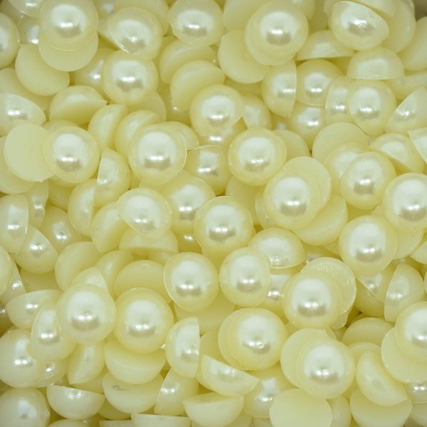Meia Pérola ABS 08mm Creme em material de alta qualidade. Com base reta, são aplicadas facilmente com cola.