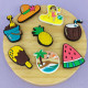 Feitos em borracha de alta qualidade, os apliques possuem encaixe padrão para babuches com furos (como Crocs). Fáceis de aplicar e super resistentes, são perfeitos para customizações criativas com mensagens positivas.