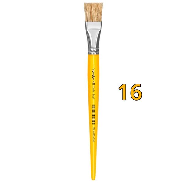 Pincel Condor chato com cerda natural, virola metálica e cabo de madeira. Proporciona aplicação suave e precisa de colas e acabamentos em artesanato.