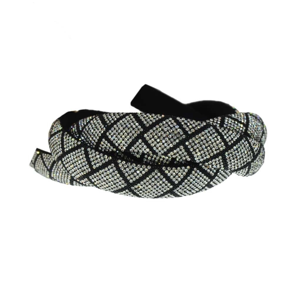 Tubo de Strass Meia Cana 15mm Geométrico Losango - metro Preto/Cristal